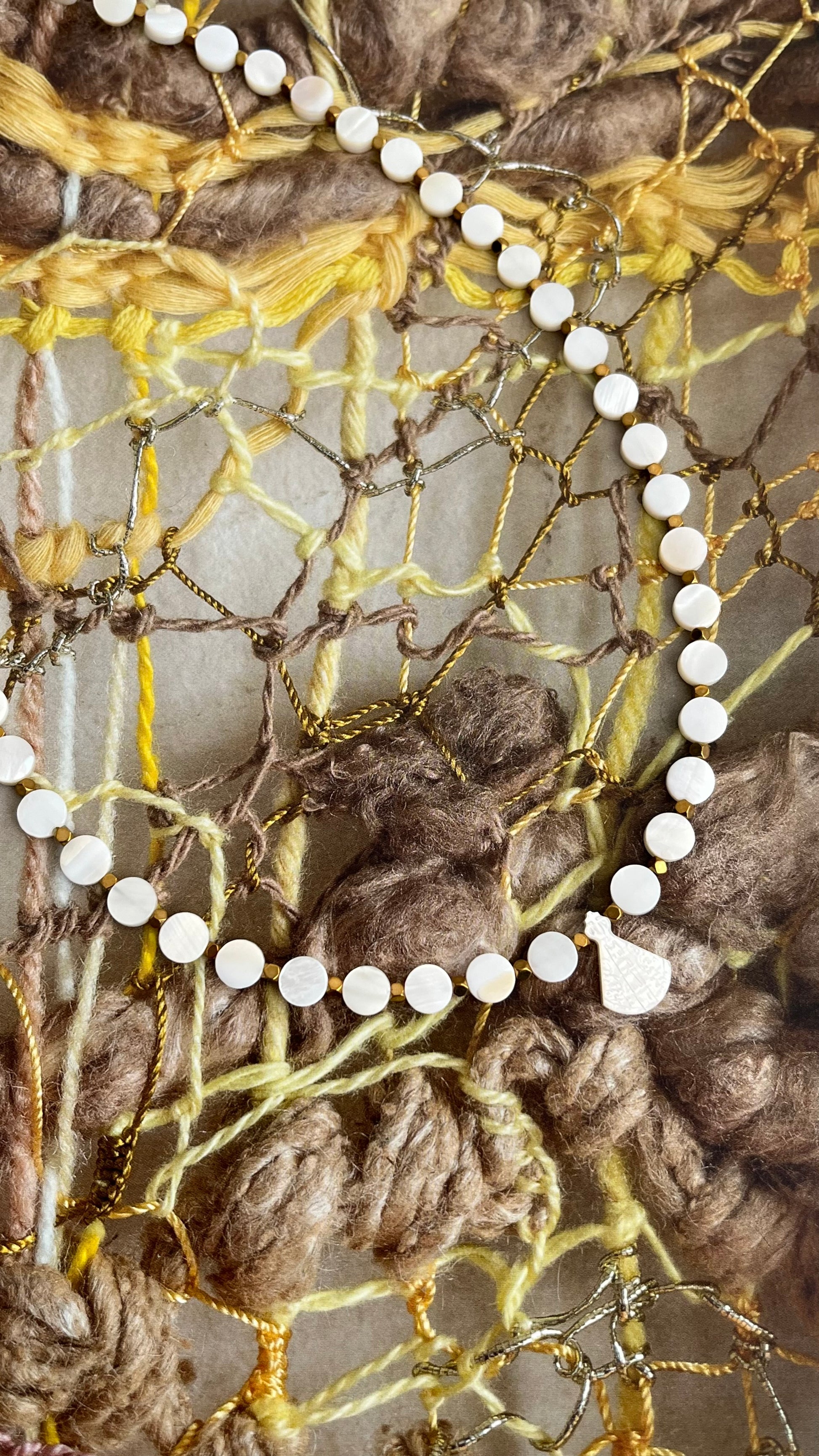 Chocker em madrepérolas e hematita com 40 cm e extensor de 5 cm.