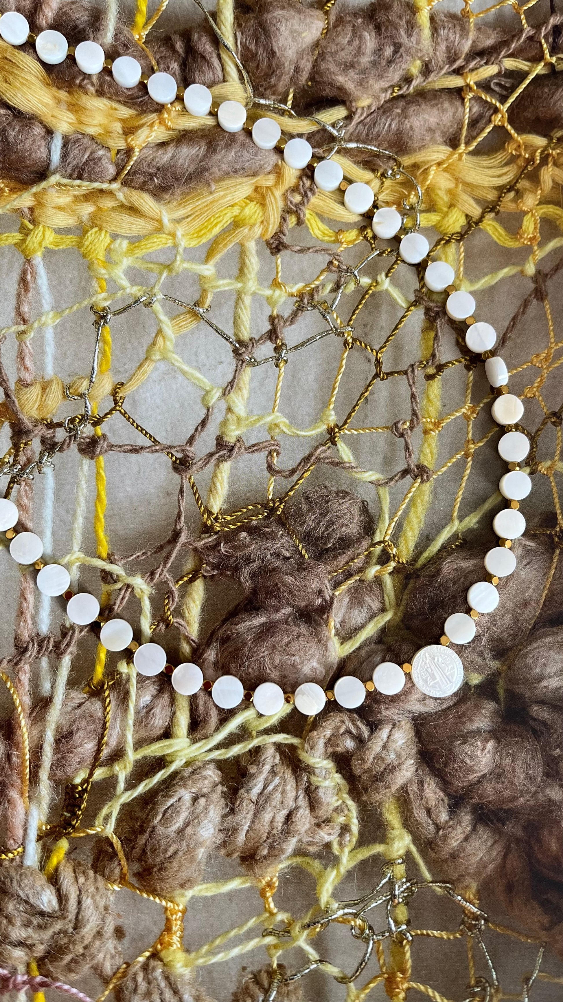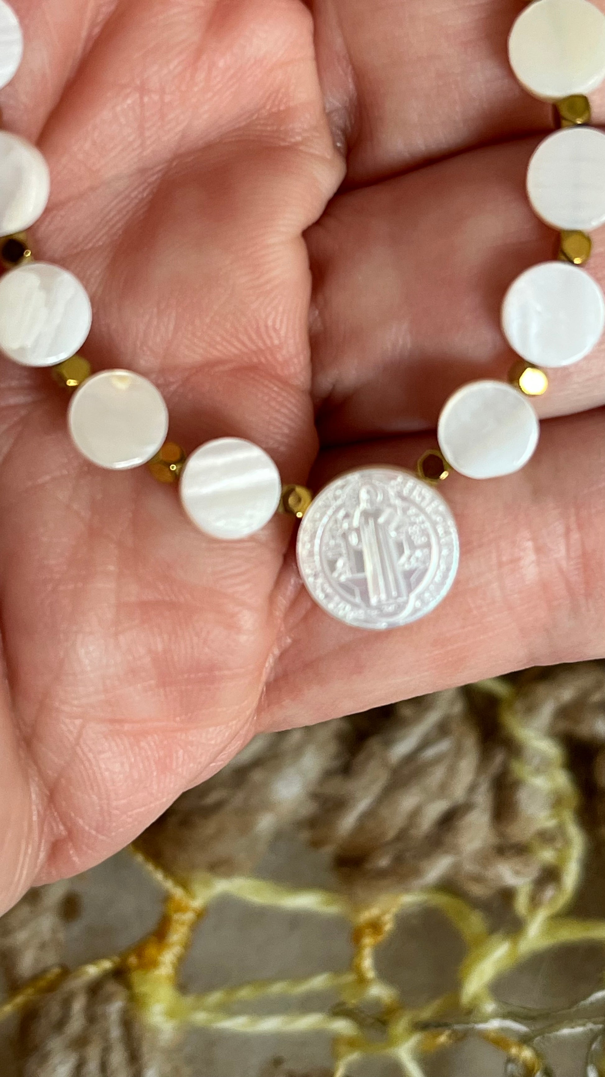 Colar em madrepérolas e hematita com 40 cm e extensor de 5 cm.